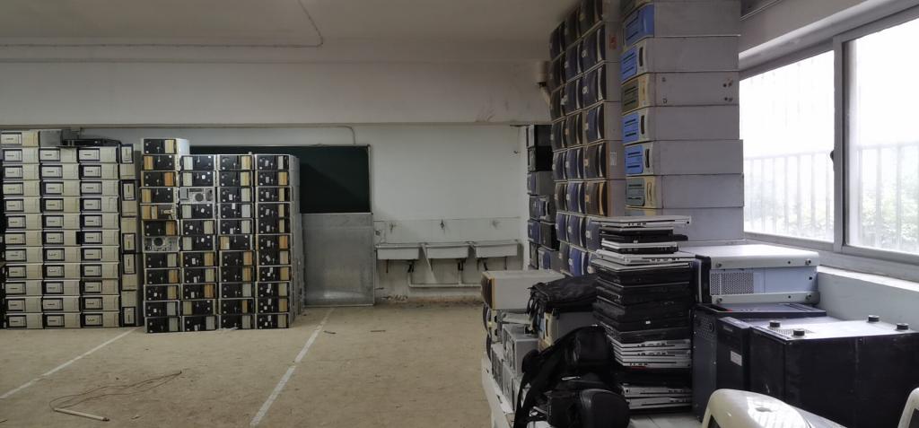 本次集中报废共有三批固定资产和两批低值耐用品。固定资产第一批为2002年12月前购入的目前已无使用价值的计算机;第二批为临海校区淘汰的空调、打印机、服务器、办公家具等;第三批为椒江校区实验室淘汰的实验仪器设备等。前期,经校务会同意,上报台州市机关事务管理局调剂中心,经市调剂中心来校实地核查、网上挂牌竞价,最终安徽福茂环保科技有限公司中标。暑假期间,国资处及时联系中标公司分次分校区来校作了全面清理。