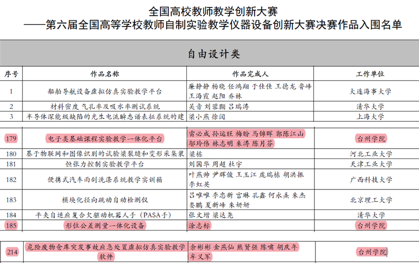 近日,由中国高等教育学会主办的全国高校教师教学创新大赛——“第六届全国高等学校教师自制实验教学仪器设备创新大赛”入围决赛名单公布,我校雷必成、涂志标、余彬彬三位教师的参赛作品脱颖而出,成功入围决赛。