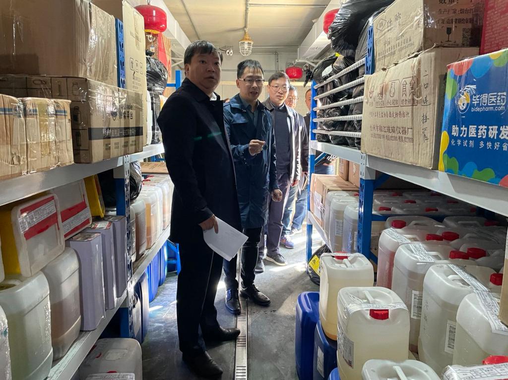 检查组一行走访了医药化工学院、生命学院、医学院,重点对科研实验室的危险化学品管理、微生物实验室安全、特种设备管理情况进行了查看。检查组一行详细查看了相关实验室危险化学品的领用记录、动态台账、危化品废弃物的收集处置,安全防护措施,消防和监控设备等,发现部分科研实验室存在着化学试剂摆放混乱、管控类化学试剂使用后未及时上锁和仪器操作规程未及时上墙等问题。