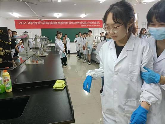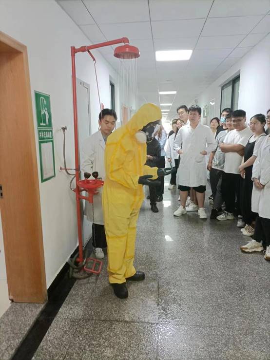 为进一步强化全校师生实验室安全防范意识,提高师生对实验室危险化学品事故的应急处置能力,我校于2023年5月18日下午在生命科学学院开展实验室危险化学品泄露应急演练活动。本次活动由国有资产与实验室管理处主办,生命科学学院承办,无锡赛弗安全装备有限公司协办,医药化工学院、生命科学学院、药学院、材料科学与工程学院、医学院和建筑工程学院100余名师生共同参与。